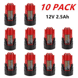 10x 12V 2.5Ah Li-ion Replacement Battery for Milwaukee