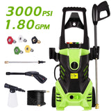 - ➤PORTABLE & POWERFUL -- Portable Pressure Washer with Powerful motor generates max 3000PSI pressure at 1.8GPM to tackle heavy-duty cleaning job more efficiently.