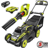 Ryobi 20 in. 40-Volt Cordless Lithium-Ion Self-Propelled Mower/Jet Fan Leaf Blower Combo Kit 5.0 Ah Battery/Charger Included