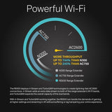 Details: Extend high-performance Wi-Fi across your home to remove dead zones, drop outs and spotty signal with the RE650 Wi-Fi range extender. Wave 2 Dual-Band with 4-stream and Turbo create Fast AC2600 Wi-Fi connections so you can enjoy watching 4K movies and gaming without lag in any room. Mu-mimo lets the RE650 talk to many devices at once to reduce wait times and speed up connections. Match the RE650 with an MU-MIMO router to amplify performance over extended Wi-Fi. The intelligent processing engine seamlessly manages each Wi-Fi band and every connection while four powerful antennas boost Wi-Fi coverage across your home.
